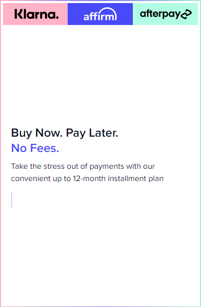 Buy Now with Affirm, Klarna, Shop Pay, After Pay and PayPal